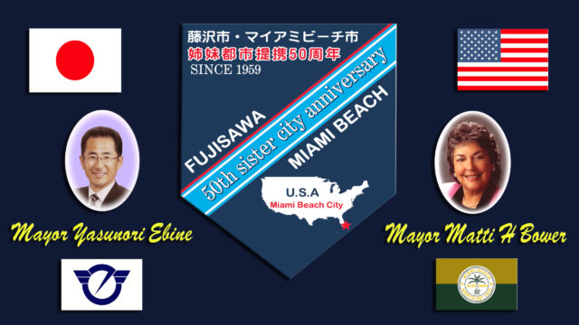 藤沢市・マイアミビーチ市 姉妹都市提携50周年 2009年3月5日で姉妹都市提携50周年を迎えました。藤沢市長:海老根靖典 マイアミビーチ市長:マッティ・ヘレナ・バウアー藤沢市から公式訪問団、市民訪問団が11月13日にマイアミビーチ市長を表敬訪問した際に、マイアミビーチ市は11月13... イベント