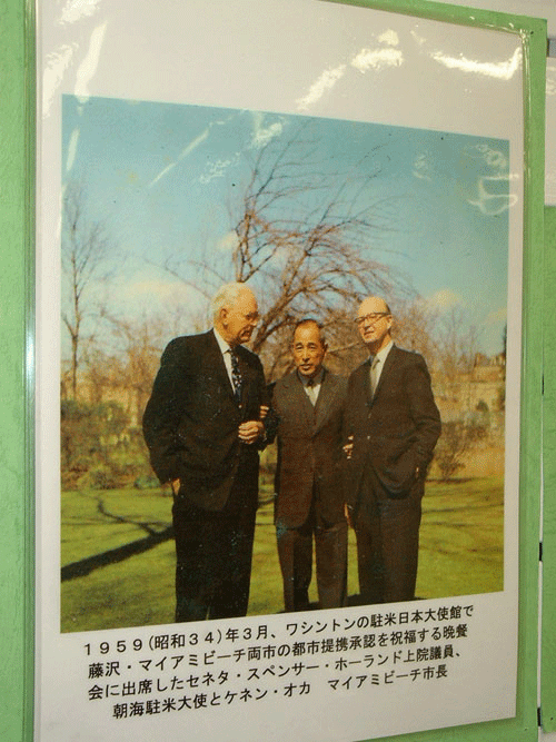 The sister city affiliation was officially established (March 5, 1959), and Fujisawa City changed its name from “Miami of the Orient” to “Miami Beach of the Orient. (This was the first overseas sister city affiliation for both cities.)